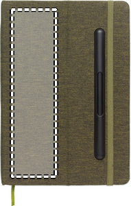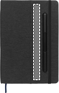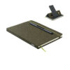 A5 anteckningsbok med hårt RPET-omslag med telefonhållarfunktion. Integrerad 2-i-1 bläckfri penna i ABS. Inbunden, 192 linjerade sidor av återvunnet papper (96 ark). Matchande band och bokmärke.