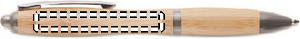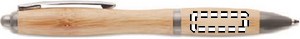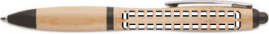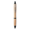 Kulspetspenna i bambu med detaljer i plast. Blått bläck.