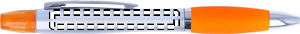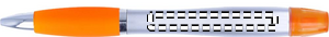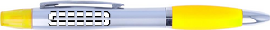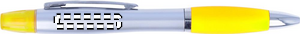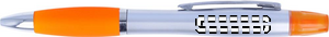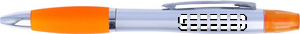 2-i-1 kulpenna i plast och highlighter i silver satin finish och krom beslag. Blått bläck.