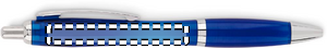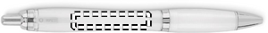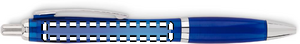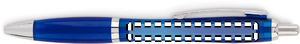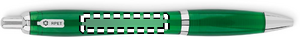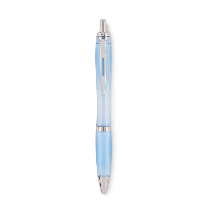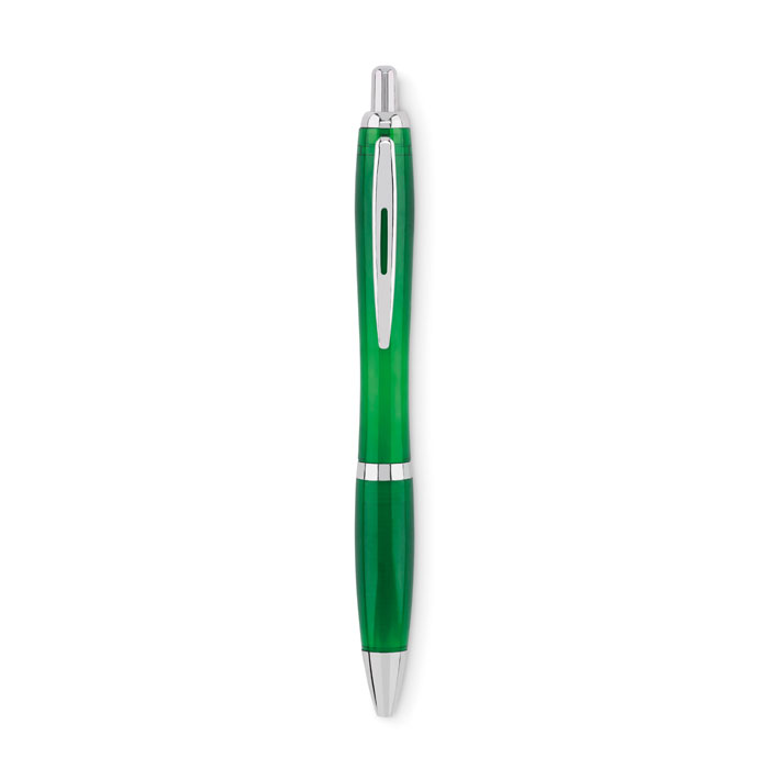 Kulspetspenna med tryckknapp tillverkad av RPET. En enkel men mycket populär design som finns i olika färger för att passa de flesta olika logotyper. Pennans hölje är tillverkat av återvunnen PET-plast, vilket gör den till ett hållbart val. Pennan har blått bläck.