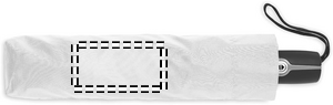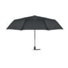 27 tums stormsäkert kompaktparaply med automatisk öppning/stängning. 190T pongee-tyg, svartpläterat 3-delat stålskaft. Glasfiberribbor. Svart PP-handtag med knapp. Med matchande fodral.