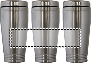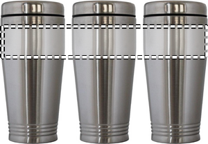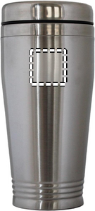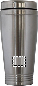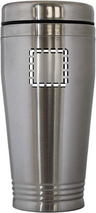 Take away mugg med dubbelvägg i rostfritt stål. Lock i svart PP med glidlock som täcker öppningen för att hålla värmen bättre. Volym: 400ml.