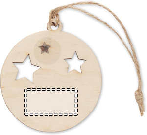 Julgransprynad i form av en träkula med jutesnöre och granfrön. Presenteras i kraftkuvert. FSC®-certified | FSC MIX/FSC 100%, W18.8, FSC-C213206