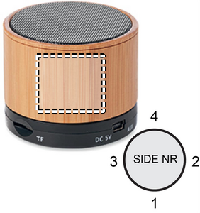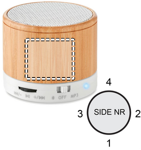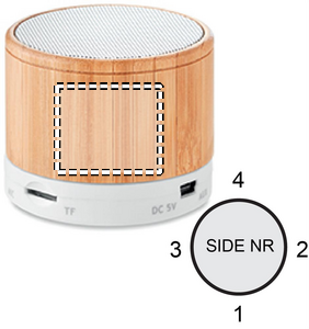 Trådlös högtalare i ABS med bambuhölje och LED-indikator. Högtalaren har ett laddningsbart 450 mAh Li-ion batteri. Inkluderar en SD-port och en AUX/USB-kabel. Handsfree ringfunktion. Output: 3W, 3 Ohm och 5V. Speltid ca 3 timmar på en laddning.