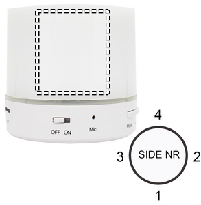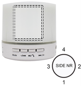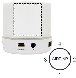 Trådlös högtalare med trådlös i ABS plast. Inbyggd LED lampa som skiftar ljus i 3 olika färger. Laddningsbar med ett inbyggt 500 mAh Li-ion batteri. SD-kortport och AUX/USB kabel. Handsfree med ring och svara funktion. Output: 3W, 4 Ohm. Speltid ca 2 timmar på en laddning.
