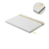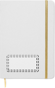 A5 anteckningsbok med omslag av hård återvunnen kartong. Svart omslag. Inbunden med 160 linjerade sidor av återvunnet papper (80 ark). Elastiskt stängnings- och läsband matchar den underliggande färgen. Efter lasergraveringen kommer logon att träda fram i samma färg som bandet.