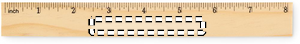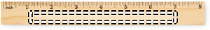 Linjal i furuträ 20 cm med centimeterskala på ena sidan och tumskala på den andra.
