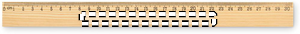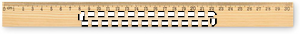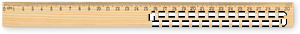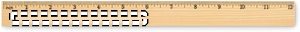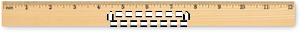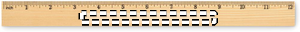 Linjal i furuträ 30 cm med centimeterskala på ena sidan och tumskala på den andra.
