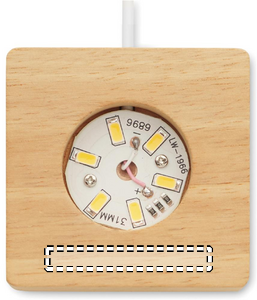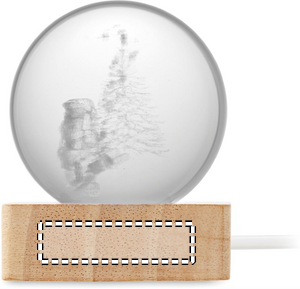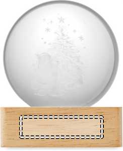 Julkula i glass med LED-ljus (100 lumen) och julmönster inuti på bas av gummiträ. USB-laddningskabel (90 cm) ingår.
