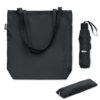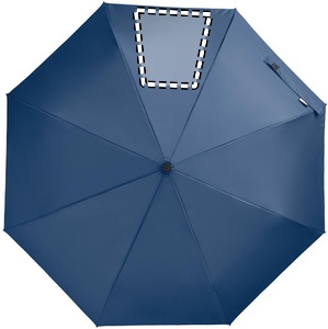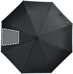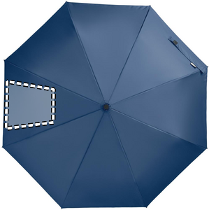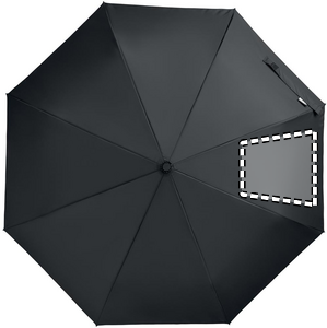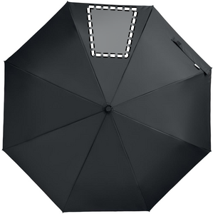 21 tum 3-delat paraply med manuellt öppnings- och stängningsbart, stormsäkert i 190T RPET pongee inklusive tygväska. Har ett dolt blixtlåsförsett fack för paraplyet och för att hålla väskans innehåll torrt. När väskan inte används rullas den ihop och blixtlåsfacket fungerar som paraplyfodral.