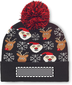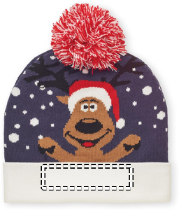Stickad mössa med julmotiv och tofs i mjuk, stretchbar akryl.