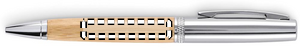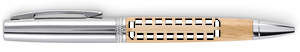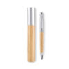 Kulspetspenna med vridfunktion, skaft i metall och bambufinish. Kommer i rör med lock i bambu och aluminium. Blått bläck.