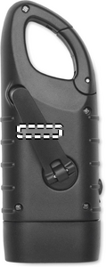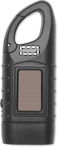 3 vita LED-lampor som drivs av både solpanel och dynamovev med 40 mAh- batteri i återvunnen ABS.