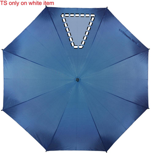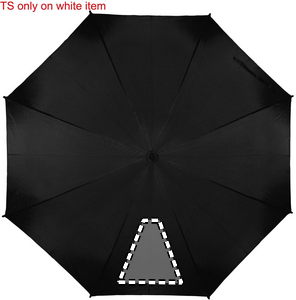 Promenadparaply, 23 tums i 190T polyester med svart pläterat stålskaft och spröt. Svarta plast tippar. Rakt svart handtag i mjukt EVA material. Manuel stängning och automatisk öppning.