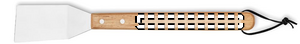 Set med 3 grillverktyg i rostfritt stål: spade, gaffel och tång med handtag i ek. Förpackade i kraftlåda med lock.