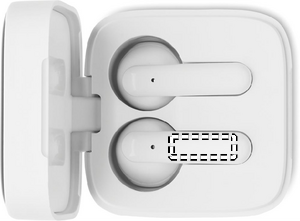 ABS True Wireless Stereo (TWS) 5.3 trådlösa öronsnäckor med mikrofon och ett 30 mAh-batteri. Speltid ca 4 timmar. Batteriet laddas med solceller. Automatisk parning. Inklusive en typ C-laddningskabel och en 200 mAh laddningsstation.