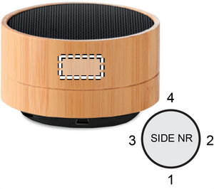 Trådlös högtalare i ABS med bambuhölje och LED-indikator. Högtalaren har ett laddningsbart 450 mAh Li-ion batteri. Inkluderar en SD-port och en AUX/USB-kabel. Handsfree ringfunktion. Output: 3W, 3 Ohm och 5V. Speltid ca 3 timmar på en laddning.