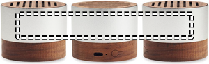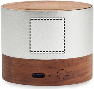 5.3 trådlösa högtalare med återvunnet aluminiumhölje samt bas och topp i valnöt. 1 Uppladdningsbart Li-ION 300 mAh batteri ingår. Uteffekt: 3W, 3 Ohm och 5V. Speltid ca 3 timmar.