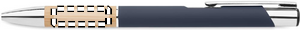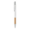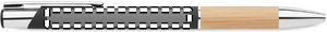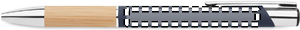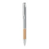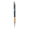 Tryckknappspenna i aluminium med bambugrepp. Blått bläck.