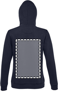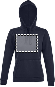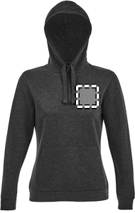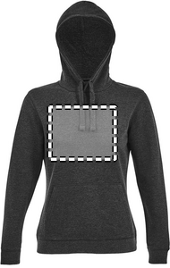 SOL'S SPENCER DAM, SWEATSHIRT MED HUVA FÖR DAMER, 80 % ringspunnen bomull - 20 % polyester, Borstat foder, Utsida: 100 % bomull FLEECE 280 LSF (tyg med låg krympningsgrad) , Påsydd ficka på framsidan, Skuren och sydd, Fodrad huva med dragsko, 2x2 ribbade muddar i ärmslut och nederkant, Halvmåneformad innerkrage, Tejpad halsringning för matchande storlekar, se storlekstabellen i avsnittet om produktdokumentation.