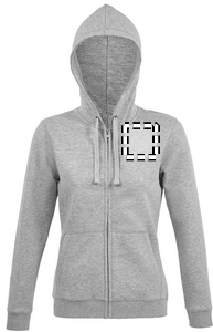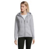 SOL'S SPIKE DAM, HUVTRÖJA MED DRAGKEDJA FÖR DAMER, 80 % ringspunnen bomull - 20 % polyester, Borstat foder, Utsida: 100 % bomull FLEECE 280 LSF (tyg med låg krympningsgrad) , Släta ärmar, 2 kängurufickor, Skuren och sydd, Fodrad huva med dragsko i ton i ton, 2x2 ribbade muddar i ärmslut och nederkant, Halvmåneformad innerkrage, Tejpad halsringning, YKK-dragkedja för matchande storlekar, se storlekstabellen i avsnittet om produktdokumentation.