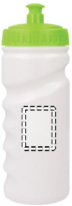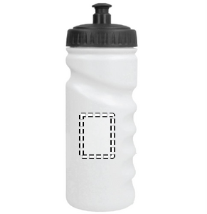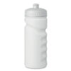 Sportig vattenflaska med bekväm handtag format efter handen. Material i fast PE-plast. Kapacitet: 500 ml. Läckagefritt.
