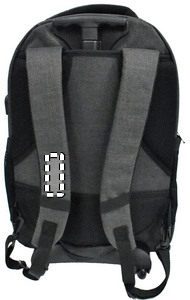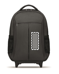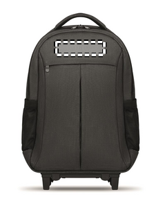 Ryggsäck med trolley-hjul i 360D polyester. Innehåller ett fack för 15 tums bärbar dator och en framficka med dragkedja. Vadderat i ryggen och på axelremmarna. Det finns även ett fack för ev. surfplatta. Har även ett skydd för hjulen när den bärs på ryggen för att undvika att smutsa ner kläderna.