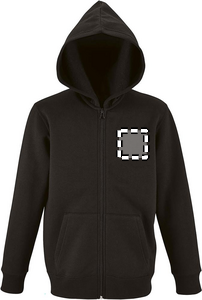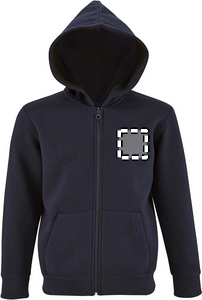 SOL'S STONE KIDS, HUVTRÖJA MED DRAGKEDJA FÖR BARN, 50 % ringspunnen bomull - 50 % polyester BRUSHED FLEECE 260, Släta ärmar, 2 kängurufickor, Huva, Ribbade muddar i ärmslut och nederkant, Rundstickad för matchande storlekar, se storlekstabellen i avsnittet om produktdokumentation.
