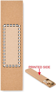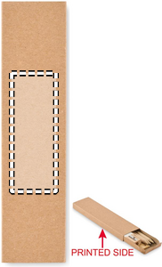 Papperslåda med 3 blyertspennor, 1 pennvässare, 1 suddgummi och 1 trälinjal.
