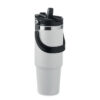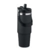 Populär dubbelväggig mugg i återvunnet rostfritt stål (90% återvunnet rostfritt stål och 10% rostfritt stål) med lock med inre sugrör, vikbart munstycke och dricksöppning. Volym 850 ml.