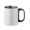 Dubbelväggig mugg i rostfritt stål med PP-handtag. Kapacitet: 300 ml. Börja dagen på ett bra sätt med en god kopp kaffe eller te. Den här muggen i rostfritt stål med enkel design hjälper dig att göra just det.
