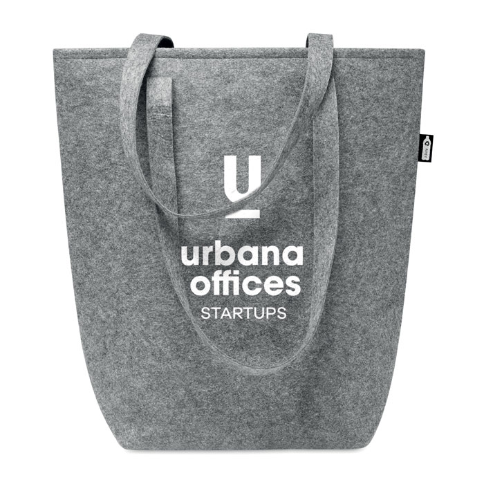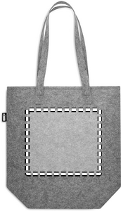 Snygg väska i kraftig RPET filt med långa handtag och bälg i botten. Filtens tjocklek: 2 mm.