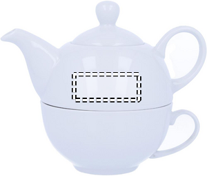 Teset inklusive en tekanna (400 ml) och en kopp i vit keramik. Förpackade i en svart presentask.