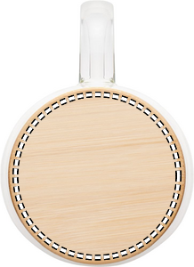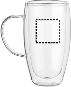"Dubbelväggig mugg i borosilikatglas med handtag och bambulock. Kapacitet: 450 ml."