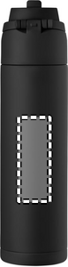 Enkelväggig flaska i återvunnet rostfritt stål (90% återvunnet rostfritt stål och 10% rostfritt stål). Med 2-i-1 sugrör och PP-lock med handtag. Läckagefri. Volym: 750 ml.