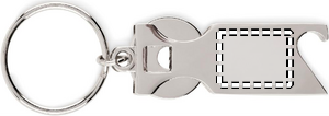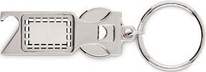 Nyckelring i zinklegering inklusive €1 mynt för kundvagn och flasköppnare.