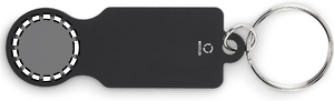 1€ kundvagnsmynt med nyckelring i återvunnen aluminium.