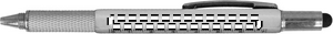 Twist kulspetspenna i ABS med linjal och touchscreen topp. Svart bläck. Duo skruvmejsel, stjärn och enkel förvaras i pennan.