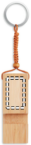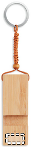 Nyckelring med telefonställ i bambu. Då bambu är ett naturligt material kan vissa färgskiftningar förekomma.
