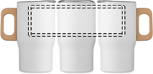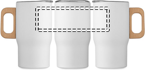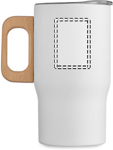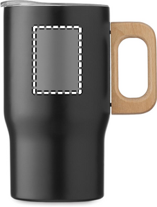 Dubbelväggig mugg i återvunnet rostfritt stål (90% återvunnet rostfritt stål och 10% rostfritt stål) med trähandtag och lock. Volym: 350 ml.