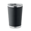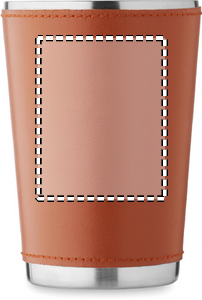 Dubbelväggig mugg i återvunnet rostfritt stål (90% återvunnet rostfritt stål och 10% rostfritt stål) med avtagbart PU-läderhölje. Lock med skjutbart drickhål. Läckagesäker. Volym: 350 ml.