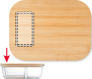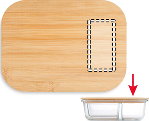 Lunchlåda i borosilikatglas med 3 fack, bambulock och silikonband. Kapacitet: 800 ml. Bambu är en naturprodukt, det kan förekomma små variationer i färg och storlek per artikel, vilket kan påverka det slutliga märkresultatet.