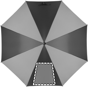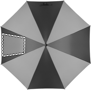 30-tums manuellt öppet vindtätt paraply i 190T pongee (4 paneler) och reflekterande material (4 paneler) med ram, ribbor och skaft i glasfiber. Rakt ABS-handtag med gummifinish. Manuell stängning.