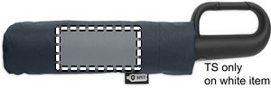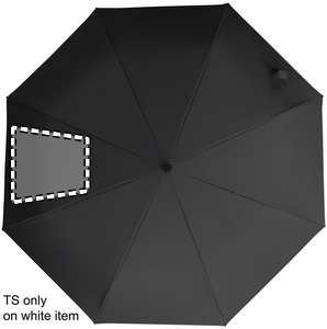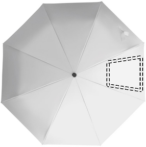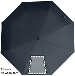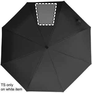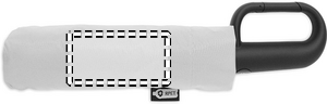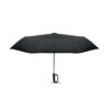 Vikbart 21'' vindtätt paraply med helt svartpläterad glasfiberram med 2 sektioner. Ribbor i glasfiber. 190T RPET pongee paneler. D-format karbinhakehandtag med gummifinish. Automatisk öppning och stängning. Inklusive påse