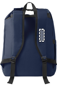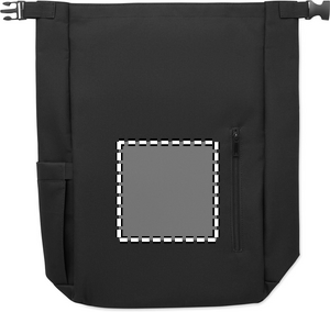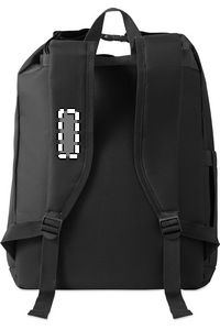 15-tums laptopryggsäck med rulltopp stägning tillverkad av 600D RPET-polyester med 210D RPET-vadderat foder. Frontficka med dragkedja, elastisk sidoficka och justerbara axelremmar.