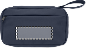 Necessär i 600D RPET med PU-beläggning, RPET-mesh och 210D RPET-foder. Huvudfack med dragkedja framtill, nätfack och öppna innerfickor.