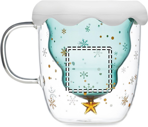 Dubbelväggig borosilikatmugg i säsongsdesign med lock och underlägg i silikon. Kapacitet: 250 ml. Den här roliga dekorerade muggen har en uppochnedvänd julgran inuti. Den perfekta muggen att dricka lite kaffe eller te ur för att komma på festligt humör under helgerna. Borosilikatglas är mycket starkare än vanligt glas, vilket gör det idealiskt för varma vätskor.