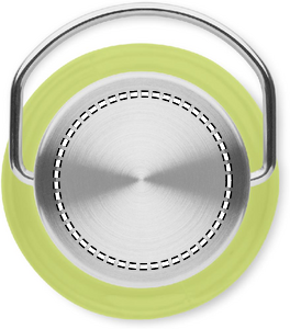 Vattenflaska i RPET som är BPA-fri och lock i rostfritt stål med handtag. Läcker inte. Kapacitet: 600 ml.