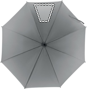 Stormsäkert 23 tums paraply i högreflekterande 190D polyester med glasfiber skaft och ribbor. Svarta plastspetsar och topp. Svart gummerat grepp. Manuell öppning/stängning.