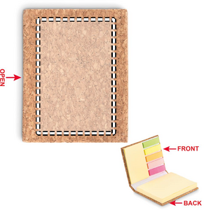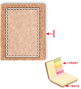 Notisblock med korkomslag 5 olika färger på märkflikar - 50 resp 25 sidor för notis